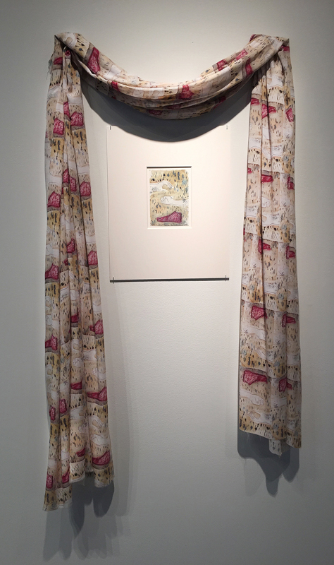 could a compromise be found, 2015-2016 watercolor and oil pastel, 6" x4" 3 yards light weight rayon printed by PAOM.com