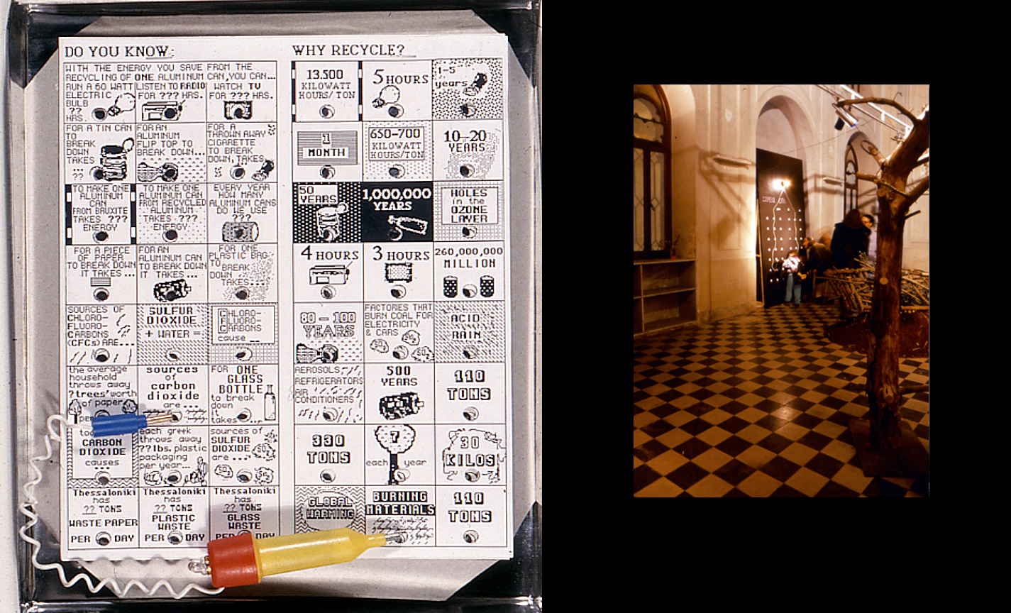 no garbage here, game board L: catalog was a game with questions and answers about recycling. When a correct answer was selected with choosing device, the light on the device lit up. R: game board in Yeni Tsami installation