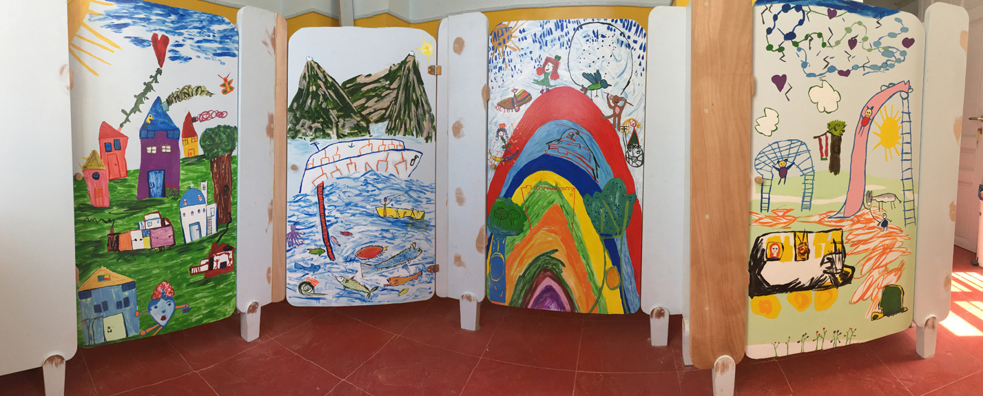 in place but painting of wood dividers still needed. update soon. school opens Sept. 11. maybe by then?