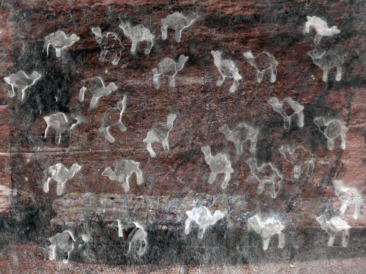 digital composite of drawings and photographs made in Petra, Jordan