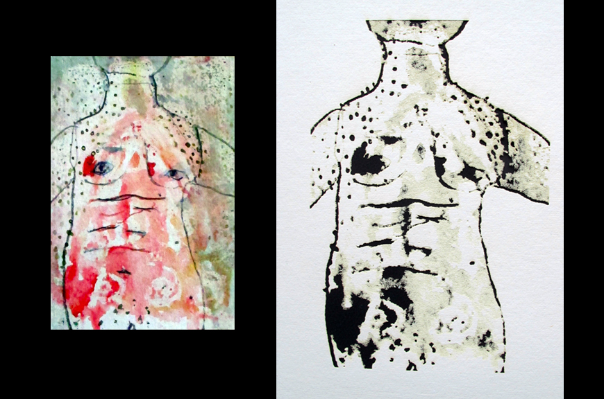left: 6"x4" watercolor, pencil