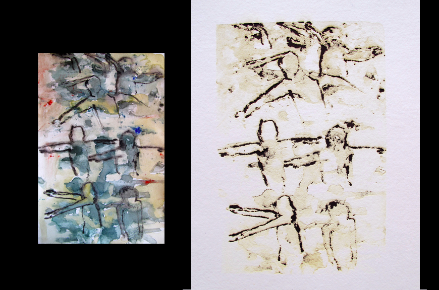 left: 6"x4" watercolor, pencil