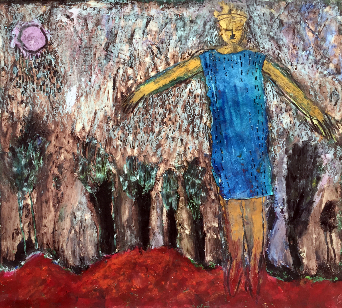 watercolour, oil pastel, thread