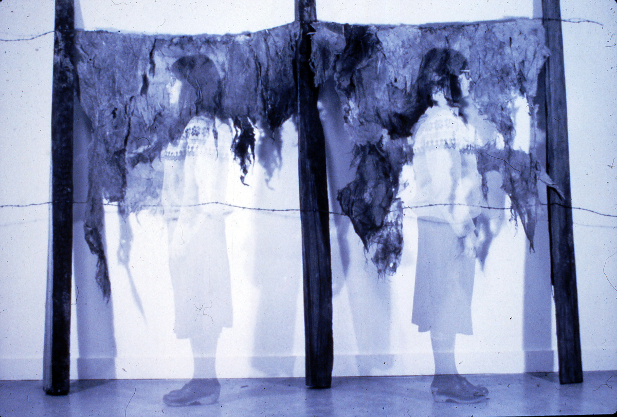 Fence/Passage 1979 Seattle Pacific University, Seattle,WA Collected debris deposits from fences along the Elbe River,Germany; barbed wire, remaindered fence posts