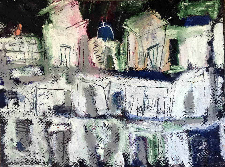 watercolour, oil pastel
