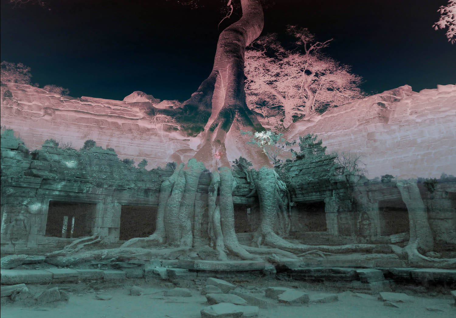 There is a tropical tree that grows forty/fifty meters into the air and in many places sits on a wall and drops huge roots down to the ground – roots as thick as an elephant’s thigh. The wall slowly breaks up and crumbles away.
