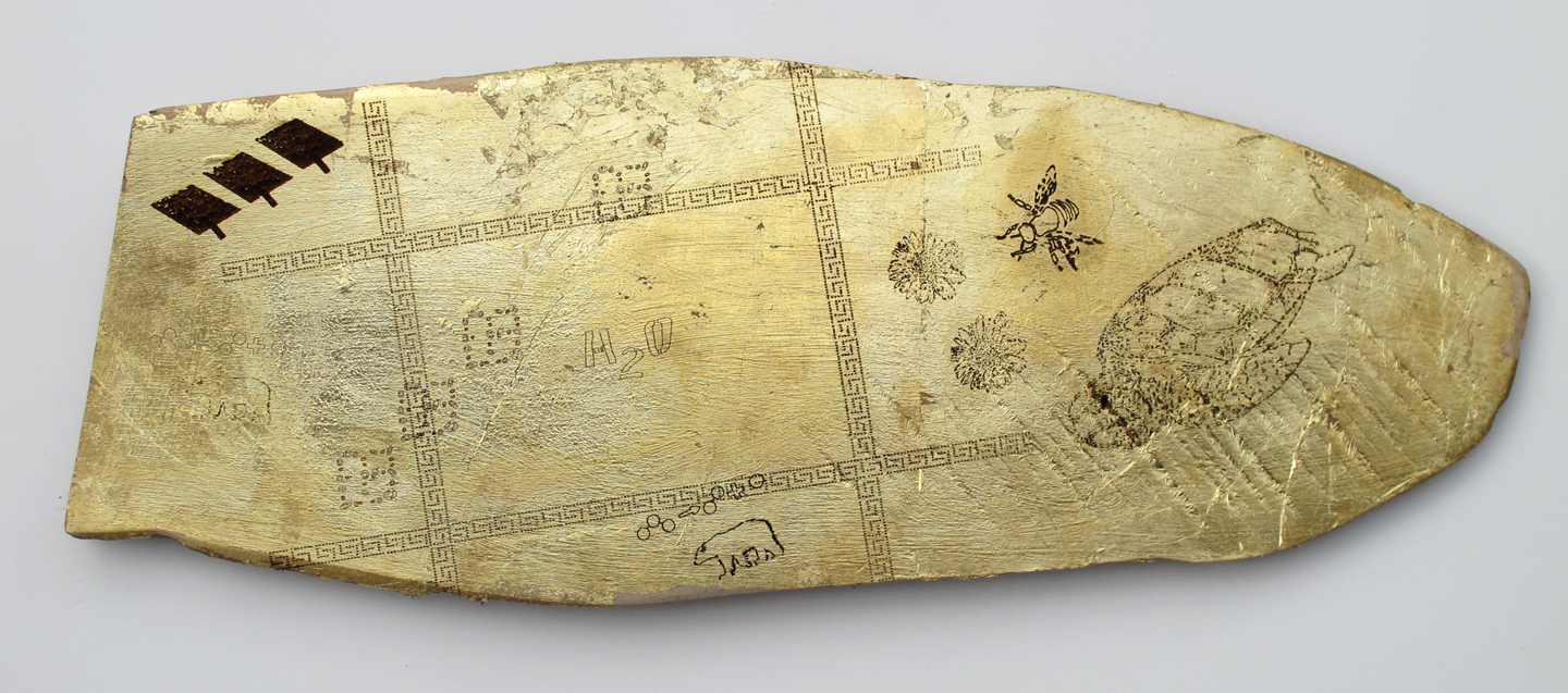 wood,gold leaf, laser cut images