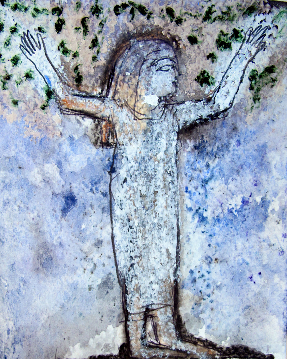 water-colour, oil pastel, pencil